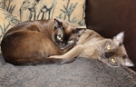 Schweren Herzens haben wir entschlossen, uns von Choco zu trennen. Der Grund liegt darin, dass sie sich aus uns unerklärlichen Gründen nicht mehr mit Lilly verträgt. Beim D-Wurf war Lilly eine „gute Tante“, die sich liebevoll um die etwas älteren Kinder kümmerte und dies auch uneingeschränkt durfte. Beim E-Wurf reagierte Choco auf einmal unwahrscheinlich aggressiv auf Lilly und griff sie mehrmals an. Ohne, dass Lilly – für uns erkennbar - etwas im Schilde führte. Oder in welcher Form auch immer, für die Kleinen eine Gefahr darstellte. Wir trennten beide erst einmal und versuchten immer wieder, sie zusammen zu führen. Leider lehnte Choco eine Versöhnung ab und reagierte unverändert böse, sobald sie Lilly zu Gesicht bekam. Als Zwischenlösung wohnte Choco mit den Kindern im Erdgeschoss und Lilly im Dachgeschoss. Ducati pendelte immer zwischen beiden Etagen – er mag jeden und alles, Hauptsache gemütlich. Inzwischen haben wir Choco kastriert, aber auch „ohne Hormone“ rückt sie von ihrer schlechten Meinung Lilly betreffend nicht ab. Und nun suchen wir das ideale Plätzchen für Choco, aber nur zusammen mit ihrer Tochter Esprit. Diese wurde auch schon kastriert und ist wie ihre Mutter kerngesund, gechipt und geimpft. Beide sollen auf jeden Fall zusammen bleiben und möglichst in einer Familie mit Kindern, wo noch keine andere Katze wohnt, glücklich und alt werden. Bewerbungen werden ab sofort gerne entgegen genommen. Gegenseitige Sympathie und ein Kontakt auch noch nach der Abgabe ist allerdings Voraussetzung!